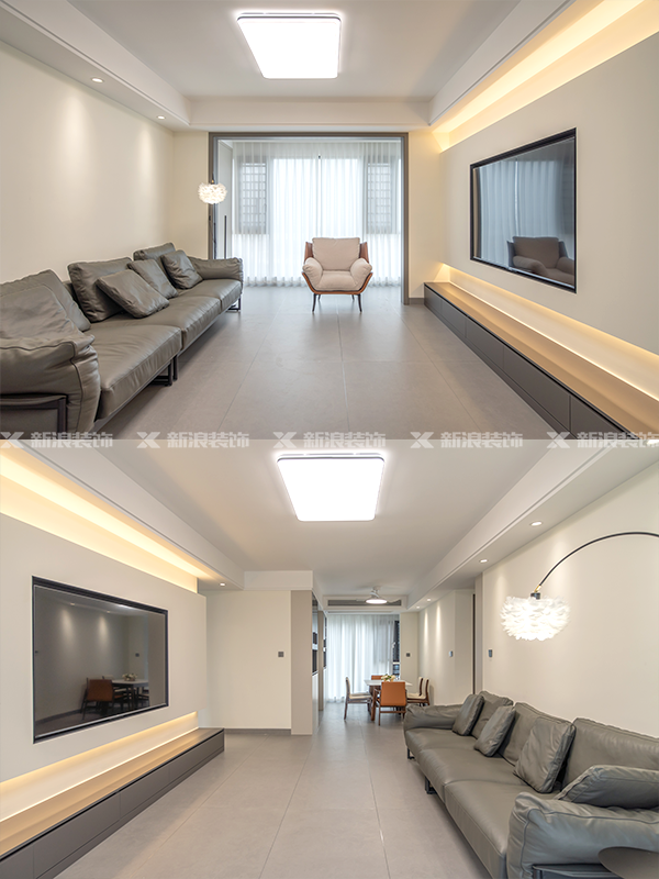 極簡(jiǎn)電視背景墻、一門(mén)到頂高端定制柜展現(xiàn)整屋高級(jí)感