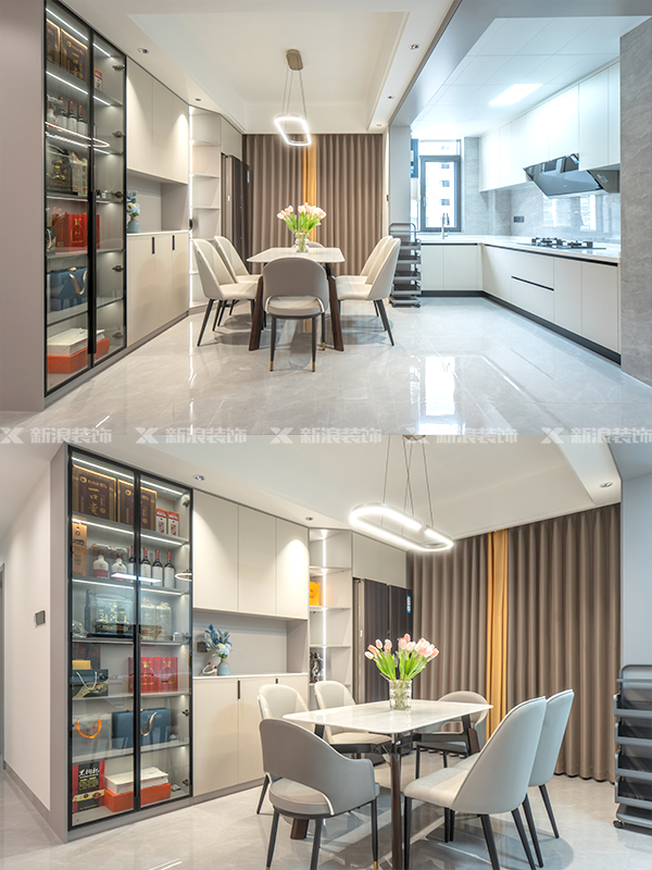 滿墻餐邊柜搭配玻璃柜門,層次感直接拉滿