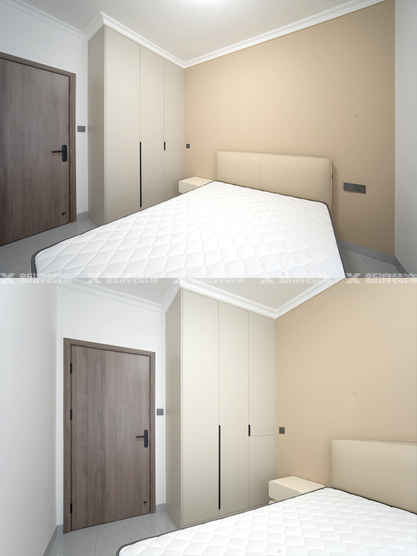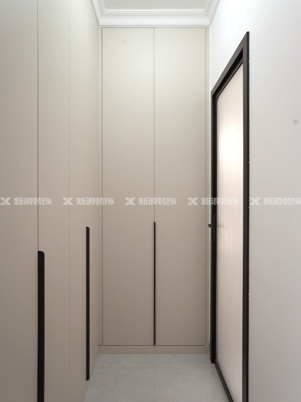 定制:柜體18厚杉木芯板;柜門PET膚感。包含百隆五金+掛衣桿+抽屜等。