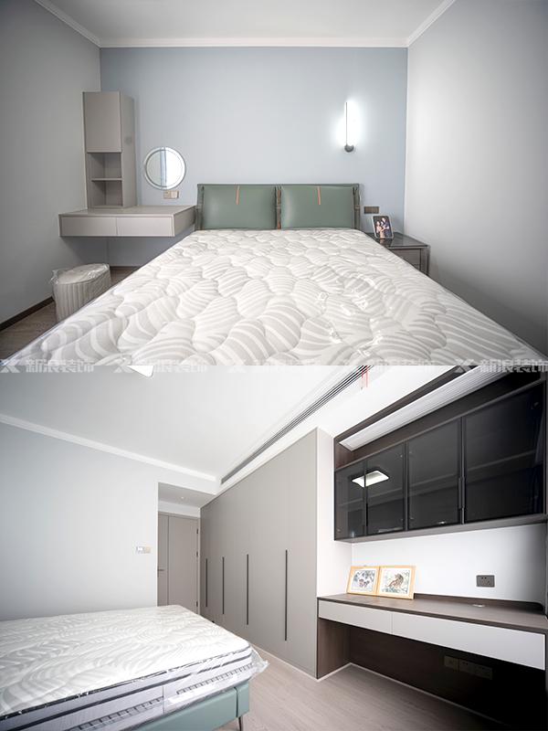 全屋定制:柜體板材是十環(huán)認證萬象天冠18厚杉木實芯板,柜門做的是歐松板模壓門;五金是奧地利進口百隆五金,自有全屋定制工廠實現(xiàn)門、墻、柜體化;