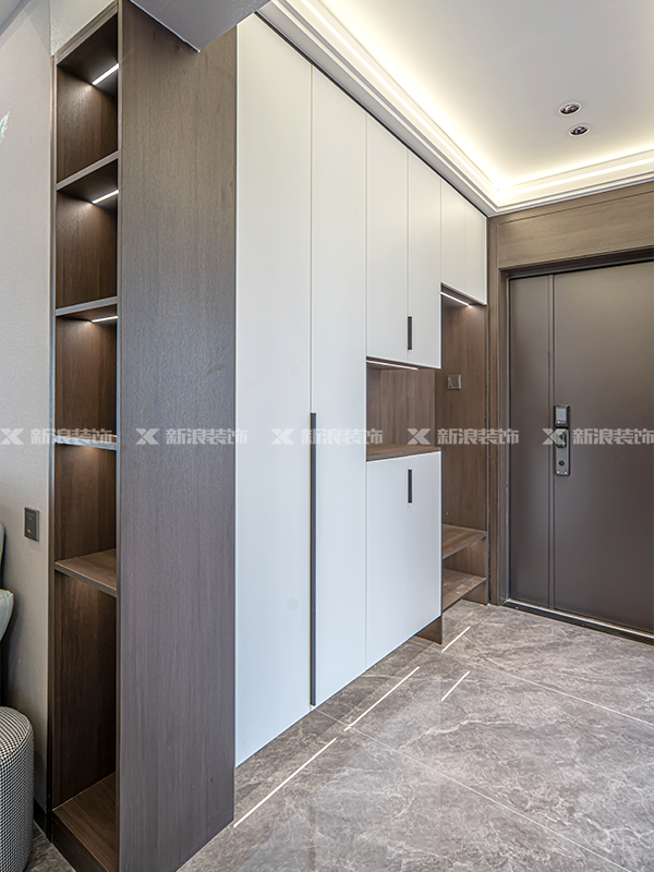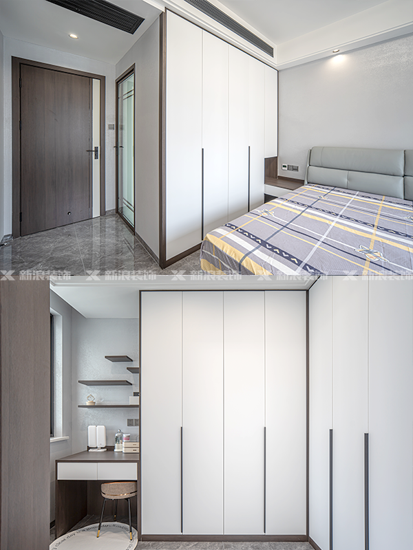 全屋定制:柜體板材是十環(huán)認(rèn)證萬象天冠18厚杉木實(shí)芯板,柜門做的是歐松板模壓門;五金是奧地利進(jìn)口百隆五金,自有全屋定制工廠實(shí)現(xiàn)門、墻、柜一體化;