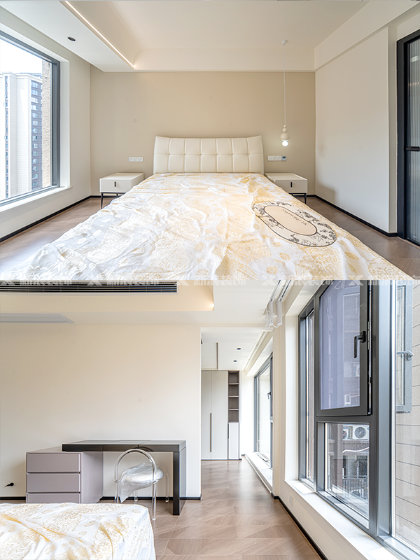 全屋以奶白色為主色調(diào)搭配同色系柜門,溫暖又治愈