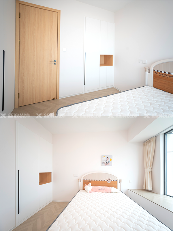 整體將原木風(fēng)貫徹到底,房門、衣柜、餐桌一體化設(shè)計,超級溫馨。