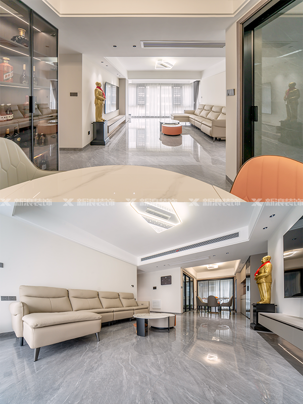陽(yáng)臺(tái)打通,和客廳一體,大板磚通鋪,整體敞亮又通透;