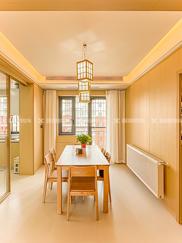 日式吊燈+大平層拉伸層高,全房木墻板,每個場景搭配起來都非常舒適。
