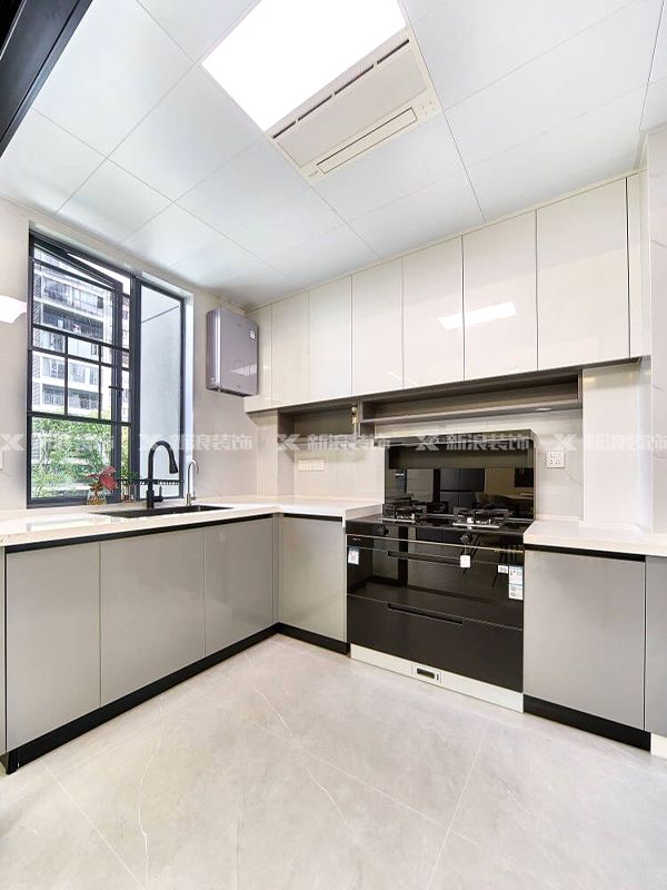 櫥柜一定要做高低臺(tái)面,洗切炒更方便。斜切工藝過(guò)渡完美銜接,無(wú)拉手的設(shè)計(jì),U型槽美觀又實(shí)用。
