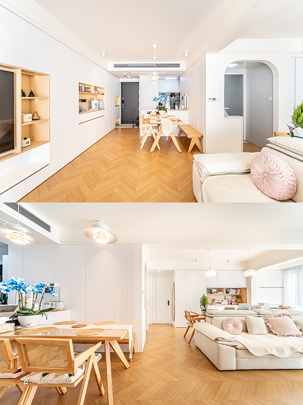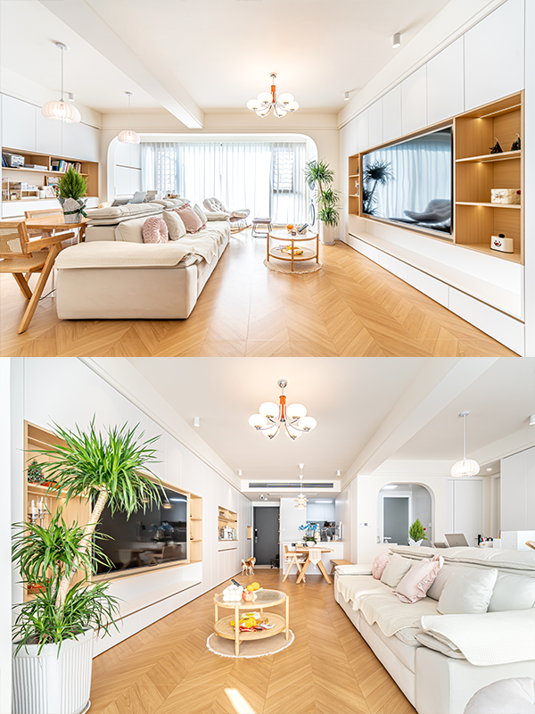 長沙裝修,治愈系裝修,新浪裝飾,奶油溫柔風裝修,常德裝修,原木奶油風,客餐廳一體化,中島臺設(shè)計,長沙舊房全拆全改,裝修公司怎么選