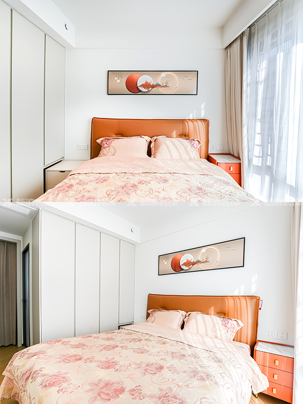 簡約摩卡棕碰撞大面積的留白,空間靈動(dòng)不壓抑。搭配同色軟裝、掛畫,溫馨滿滿。
