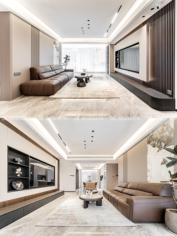 簡(jiǎn)約煙熏色碰撞質(zhì)感暮色灰,深咖軟裝和柔和木色,展現(xiàn)品味、低調(diào)生活。
