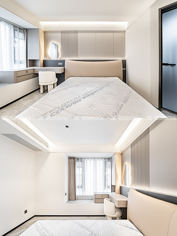 亮面暗紋大瓷磚全房通鋪,簡(jiǎn)約無(wú)主燈吊頂,大氣舒適又耐看。