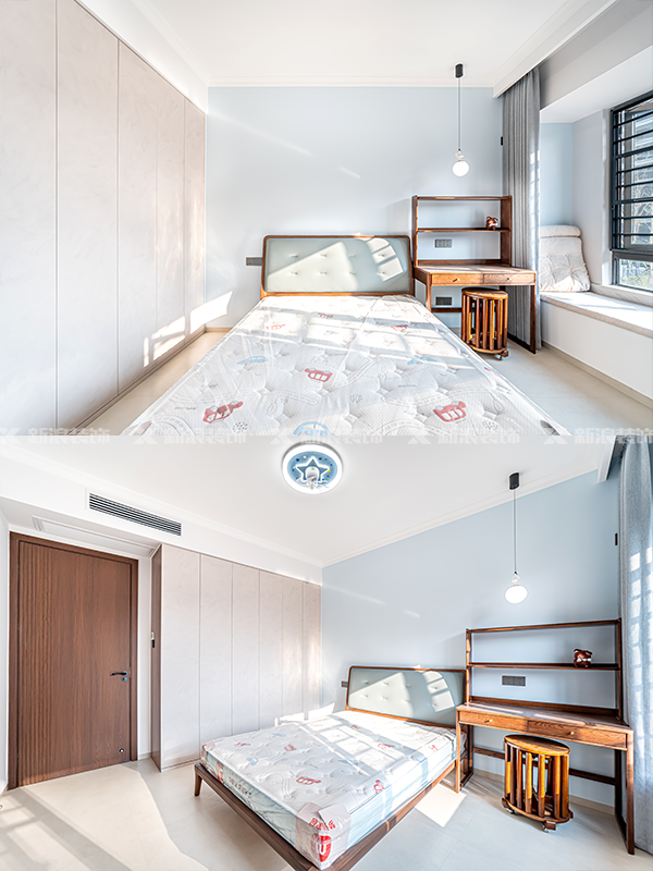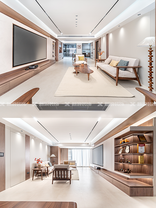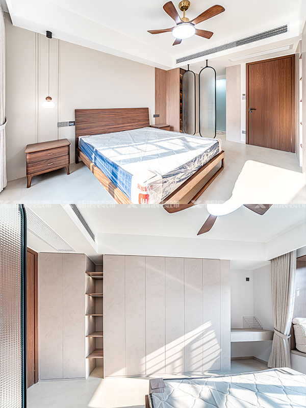 中古侘寂原木色的存在,突出了硬裝中的溫馨感,搭配軟裝,豐富了視覺和空間。