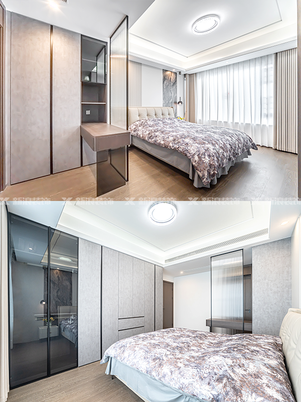 新浪裝飾,衣柜書桌一體,長沙裝修,書桌衣柜一體設計,轉(zhuǎn)角書桌衣柜,臥室衣帽間一體,床尾衣柜這樣設計,新房裝修,麗爾曼頓旗艦店開業(yè),精裝房全屋定制實景工地