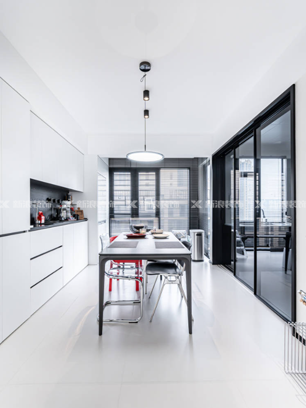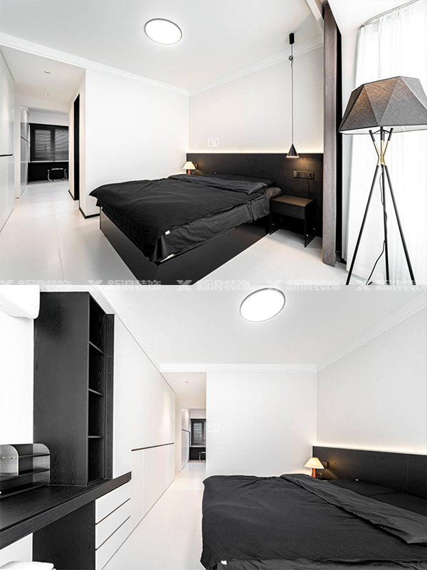 搭配簡約有質(zhì)感的黑白兩色軟裝,空間靈動不壓抑。