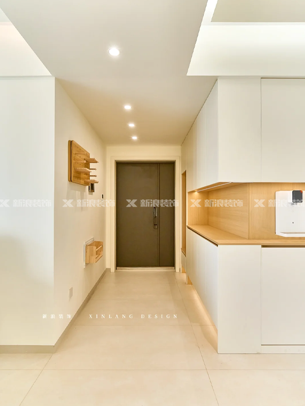 入戶鞋柜轉(zhuǎn)角直接連接餐邊柜,空間柔和通透,動線流暢。