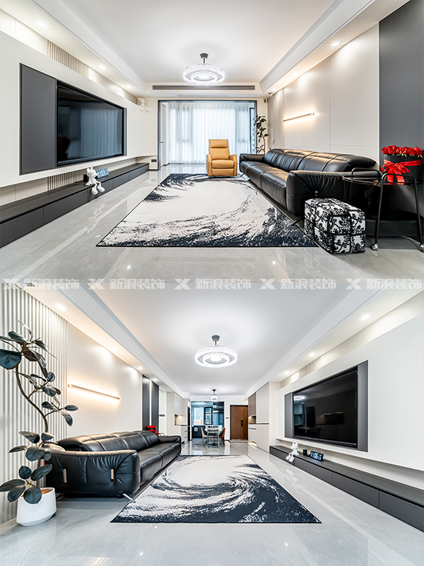 新浪裝飾,長(zhǎng)沙裝修.常德裝修.現(xiàn)代風(fēng)裝修設(shè)計(jì).實(shí)景落地.裝修案例.客餐廳布局.完工實(shí)景.麗爾曼頓.毛坯裝修