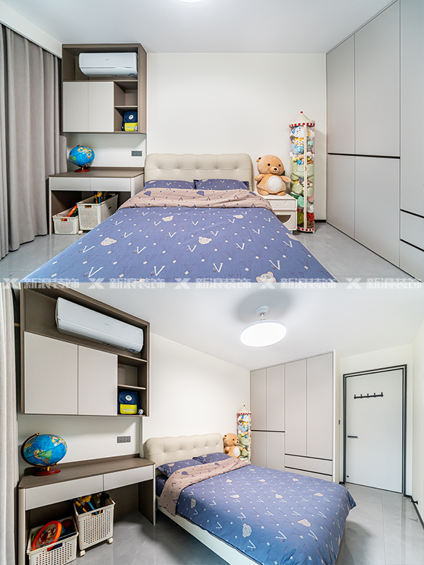 色彩本身包容性超強(qiáng),簡(jiǎn)約實(shí)用的硬裝,后期不管搭配什么顏色的軟裝、掛畫擺設(shè)都可以兼容