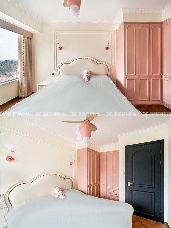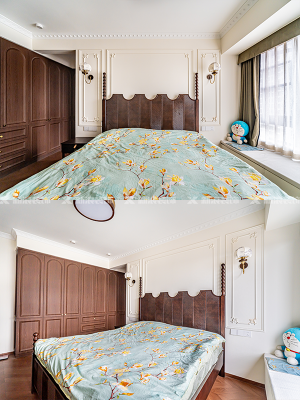 在吊頂和部分背景墻采用了法式石膏線條進(jìn)行裝飾。精致的雕花線條,加上一些小巧的浮雕點(diǎn)綴,讓整個(gè)墻面充滿了立體感和藝術(shù)氣息,這細(xì)節(jié),誰(shuí)能不愛(ài)呢