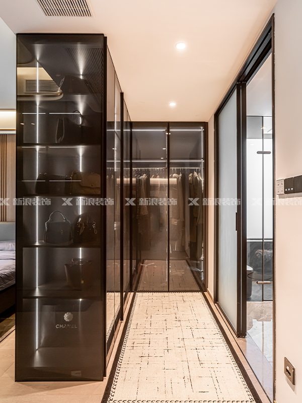 衣帽間柜門采用夾紗工藝玻璃和紗線交織,衣物在光影中若隱若現(xiàn),飄逸又修長(zhǎng),簡(jiǎn)直是時(shí)尚達(dá)人的最愛(ài)!