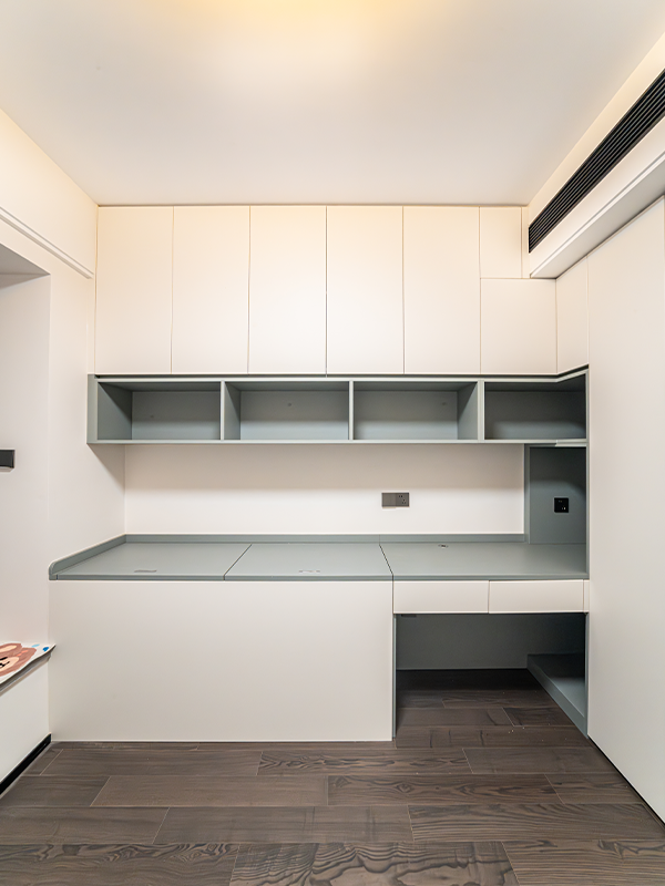 隔斷背面巧變梳妝區(qū):懸浮桌,早起化妝動(dòng)線縮短到1㎡