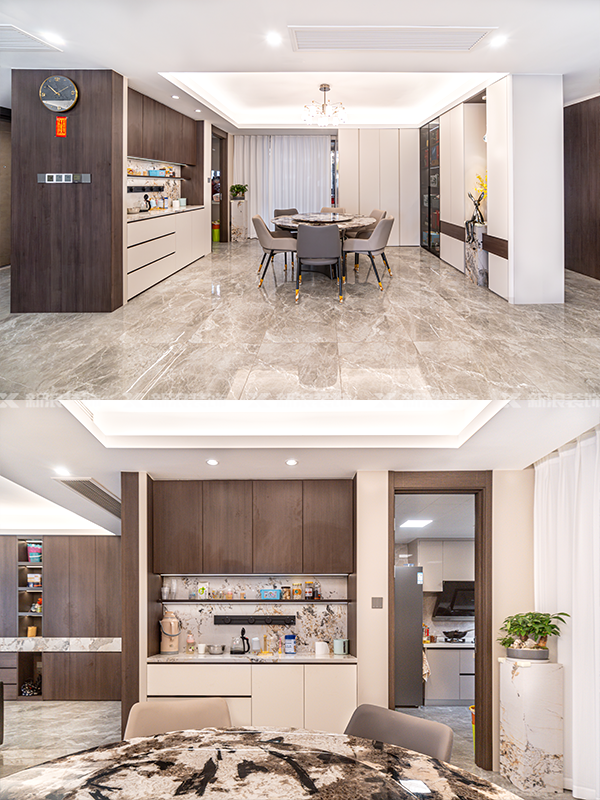 ? 精裝房部分硬裝整體拆除重新設(shè)計(jì),結(jié)合原有地面顏色進(jìn)行搭配