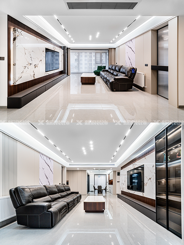 無(wú)主燈設(shè)計(jì)搭配線性燈帶,光影交錯(cuò)間氛圍感拉滿(mǎn),過(guò)道端景的燈帶更是點(diǎn)睛之筆,瞬間提升空間藝術(shù)感