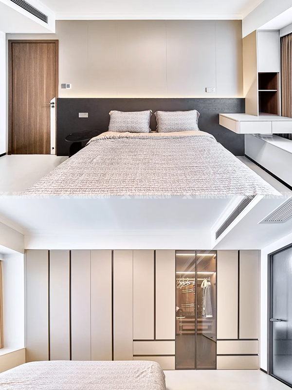內(nèi)嵌電視墻+隱形收納柜,功能顏值雙在線,躺下就是五星酒店體驗