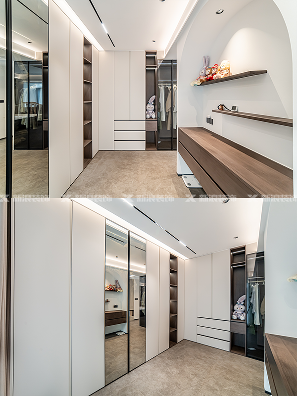 弧形墻角弱化墻體的存在,往里走就是女主人的衣帽間