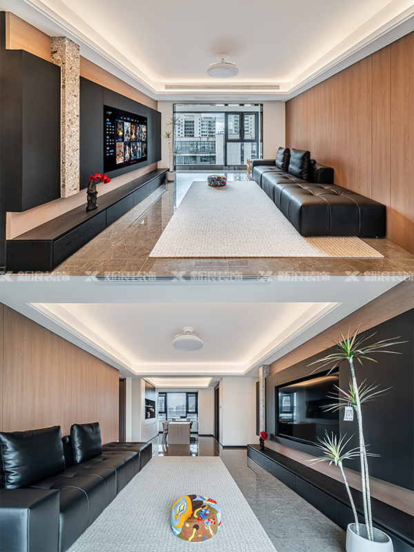 陽臺(tái)通鋪,客廳只做簡(jiǎn)約雙眼皮吊頂,吊燈搭配氛圍燈,不用花很多錢,不壓層高。