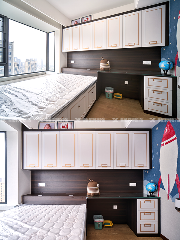 6、兒童房榻榻米床+書桌書柜+床尾衣柜